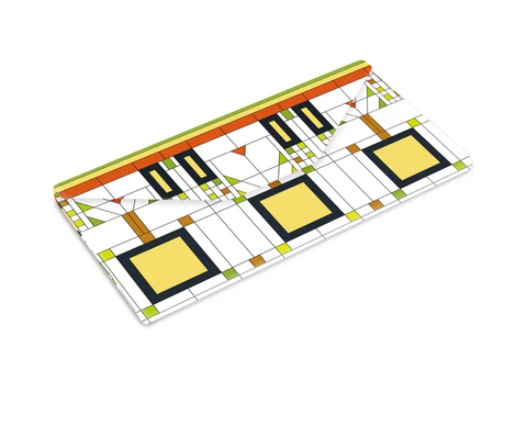 Frank Lloyd Wright's Tree of Life is a striking stained glass window design that exemplifies his philosophy of organic architecture. Wright designed the windows for the reception room and second-floor bedrooms of the Darwin D. Martin House in Buffalo, New York, and are among the most iconic motifs in his body of work. While there is no evidence that Wright or the Martin family referred to the design by this popular name, it aptly captures the geometric pattern of diagonal "branches" that culminate in colorful "leaves."