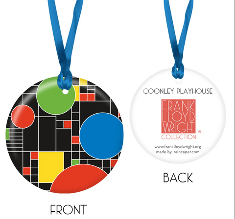 This ornament features Frank Lloyd Wright's Coonley Playhouse design.