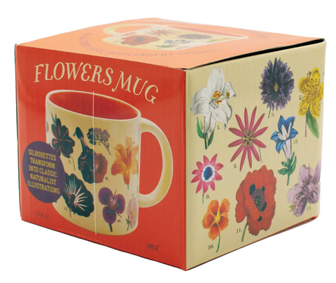 When the mug is cold, flowers in silhouette bear a hint of color. Add steaming-hot water and our heat-transforming mug reveals 18 floral species. Our Flowers mug is a wonder of nature – and heat-transforming science. Perfect for any hot beverage: coffee, tea, hot chocolate, pumpkin spiced beverage.