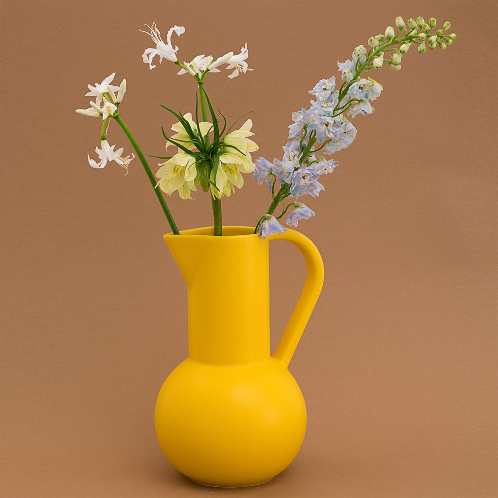 Drawing inspiration from still lifes by Danish modernist artist Vilhelm Lundstrøm this sculptural ceramic jug—handmade in Portugal using a slip-cast technique—marries refined simplicity with everyday function, picking up on the color palette and minimal yet mindful proportions of the simplified bowl, vessels and vases that characterize Lundstrøm’s work. Designed by Nicholai Wiig Hansen, the Raawii Strøm Collection by MoMA is distinguished by Hansen’s signature focus on shape being informed by function. The small jug holds up to 30oz.