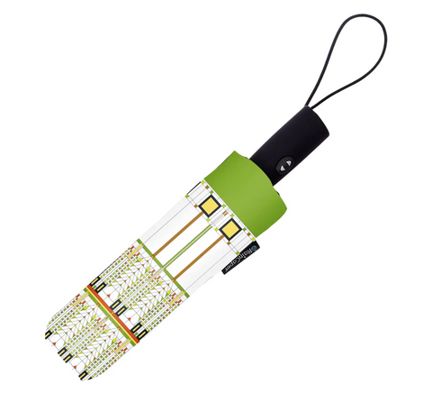 This artfully designed Frank Lloyd Wright travel umbrella includes a wrist strap and a matching sleeve. A must have accessory for commuters, museum patrons, day trippers, and world travelers.