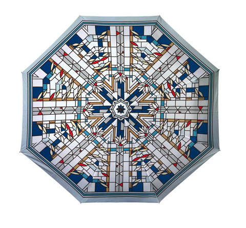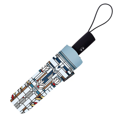 Going places? Strolling local streets or promenade avenues around the globe? RainCaper has you covered! This artfully designed Frank Lloyd Wright travel umbrella includes a wrist strap and a matching sleeve. A must have accessory for commuters, museum patrons, day trippers, and world travelers.